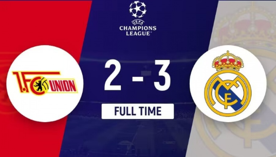 歐冠C組第6輪,皇馬客場(chǎng)對(duì)陣柏林聯(lián)合。上半場(chǎng),凱帕神撲救險(xiǎn),何塞盧頭球攻門(mén)中框彈出,莫德里奇失點(diǎn),弗蘭德讀秒破門(mén)。易邊再戰(zhàn),何塞盧頭球雙響幫助皇馬反超比分,卡拉爾遠(yuǎn)射破門(mén),塞巴略斯絕殺。最終皇馬3-2柏林聯(lián)合。積分榜方面,皇馬六戰(zhàn)全勝頭名出線,柏林聯(lián)6戰(zhàn)2分墊底。